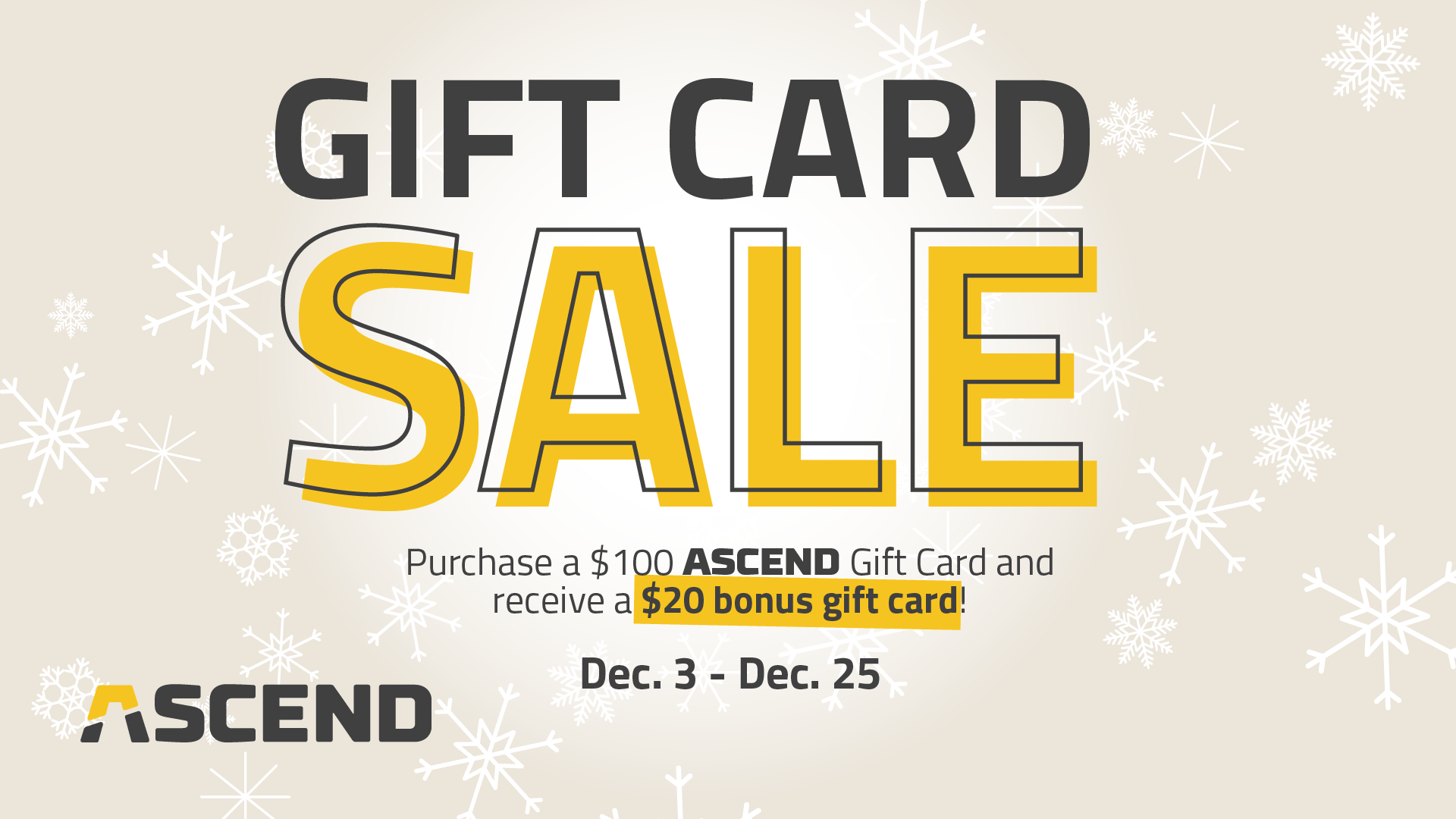 Purchase a $100 ASCEND Gift Card and receive a $20 bonus gift card!