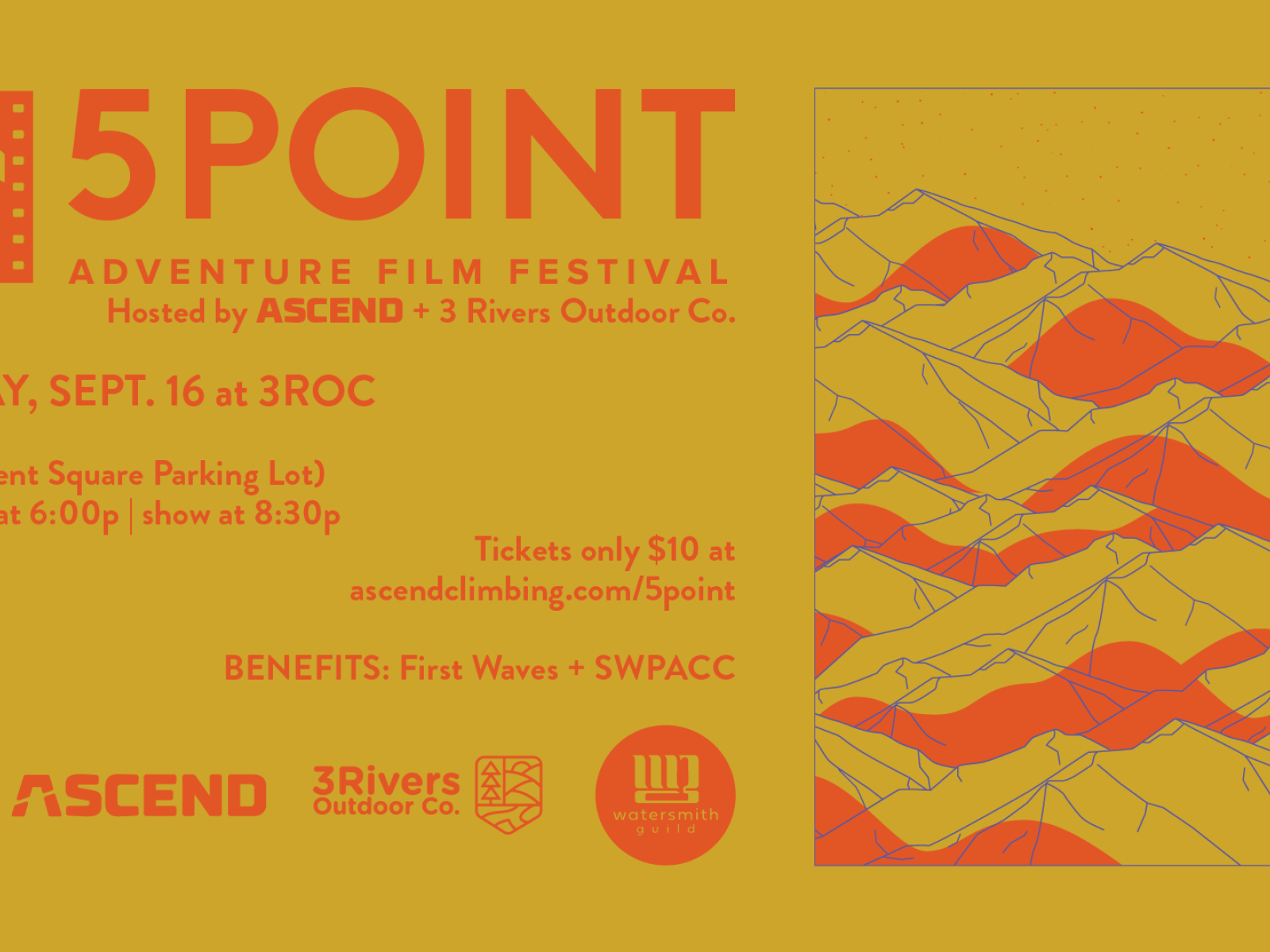 Get outside to watch these outdoor films! Come party with ASCEND, 3 Rivers Outdoor Company, and SurfSUP Adventures on Friday, September 16th for our 4th Annual 5Point Film Festival!