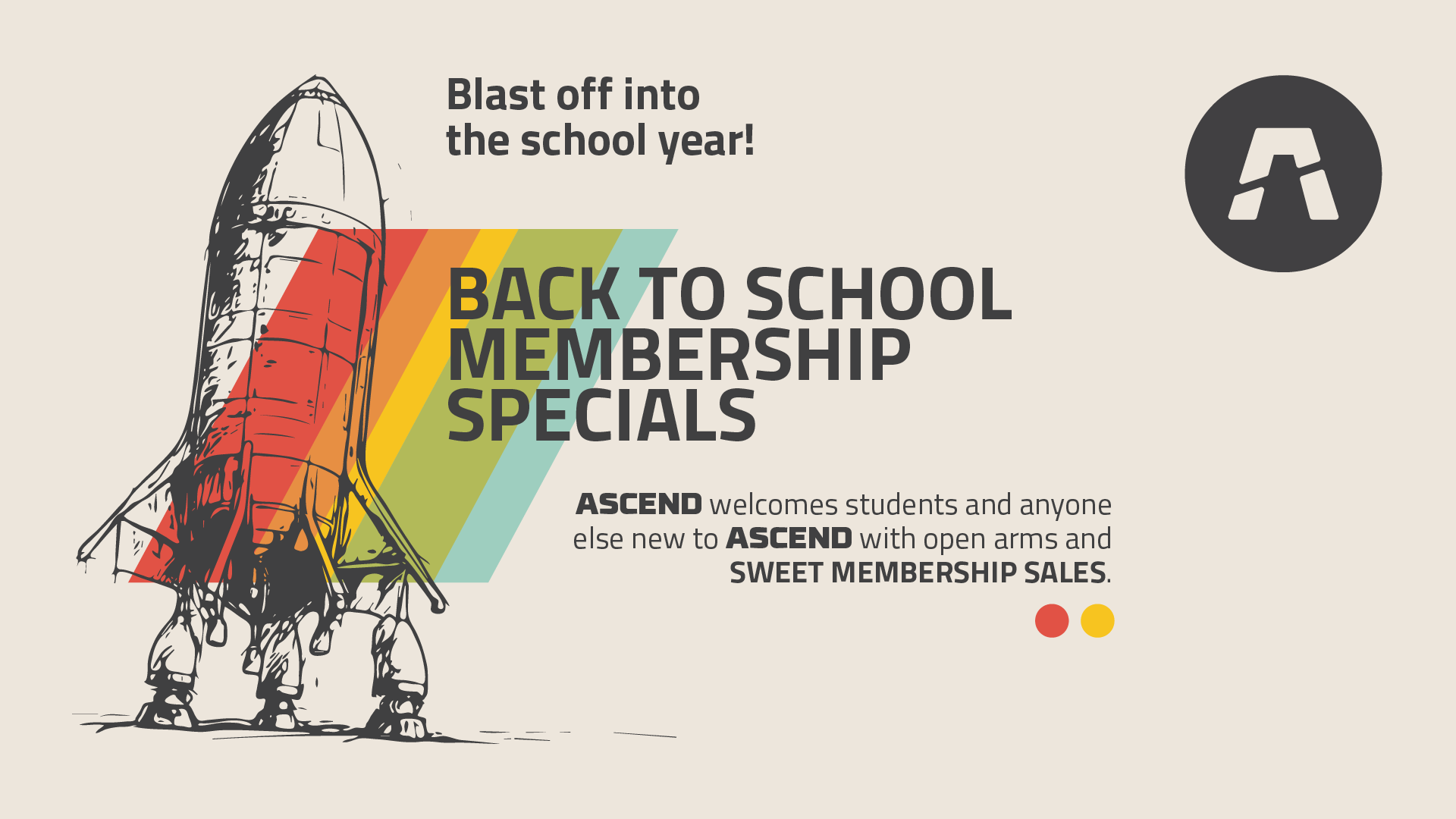 ASCEND welcomes students and anyone else new to ASCEND with open arms and SWEET MEMBERSHIP SALES. Start your school year off STRONG!