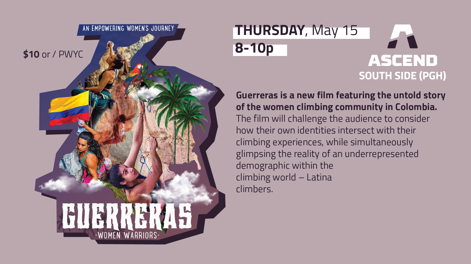 “Thank you ASCEND for being one of our sponsors and for helping organize the premiere showing in Pittsburgh. It feels right to have this event at ASCEND since it has been my home gym for many years. I’m excited for everyone to see the film!” - Elisa