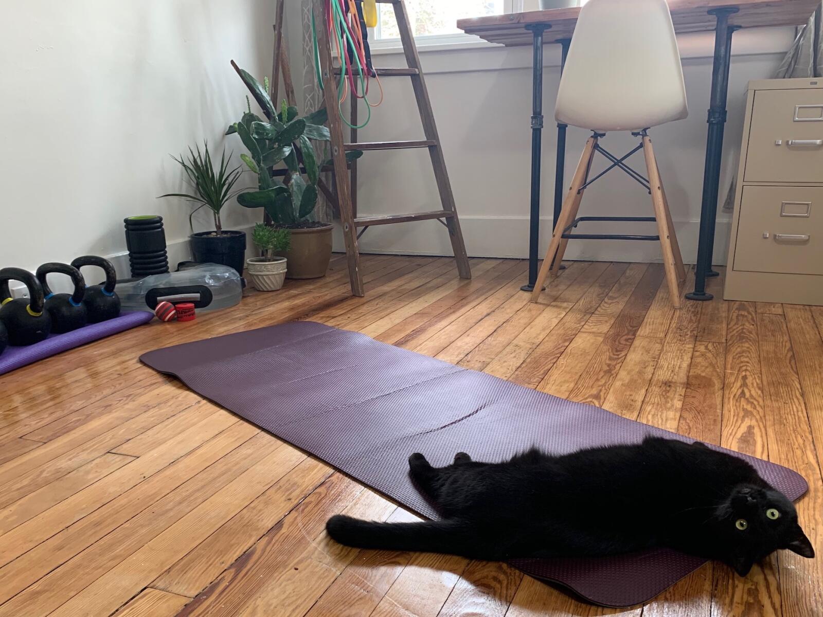 #1 Make a space - A place where I feel mentally and physically ready to exercise.✔ Clear out corner in spare bedroom✔ Organize and set up equipment✔ Arrange plants and roll out yoga mat