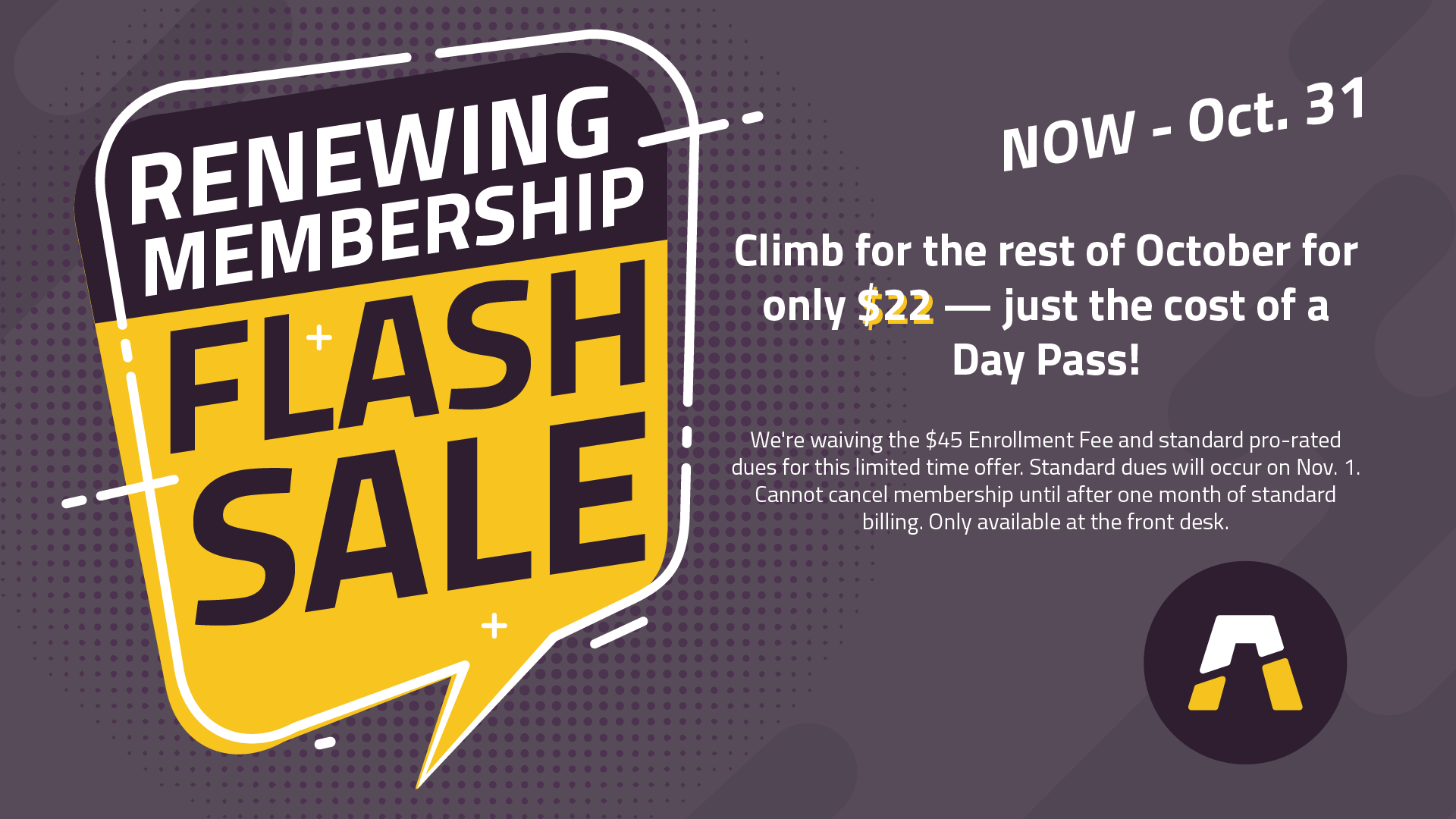 Climb for the rest of October for only $22 — just the cost of a Day Pass!