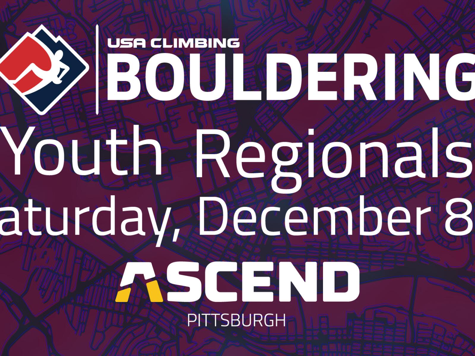 The USA Climbing: Bouldering Youth Regional Championships is the second phase of a multi-month series culminating with a national finals event in February of 2019. To learn more and to register, please go HERE.Notes: