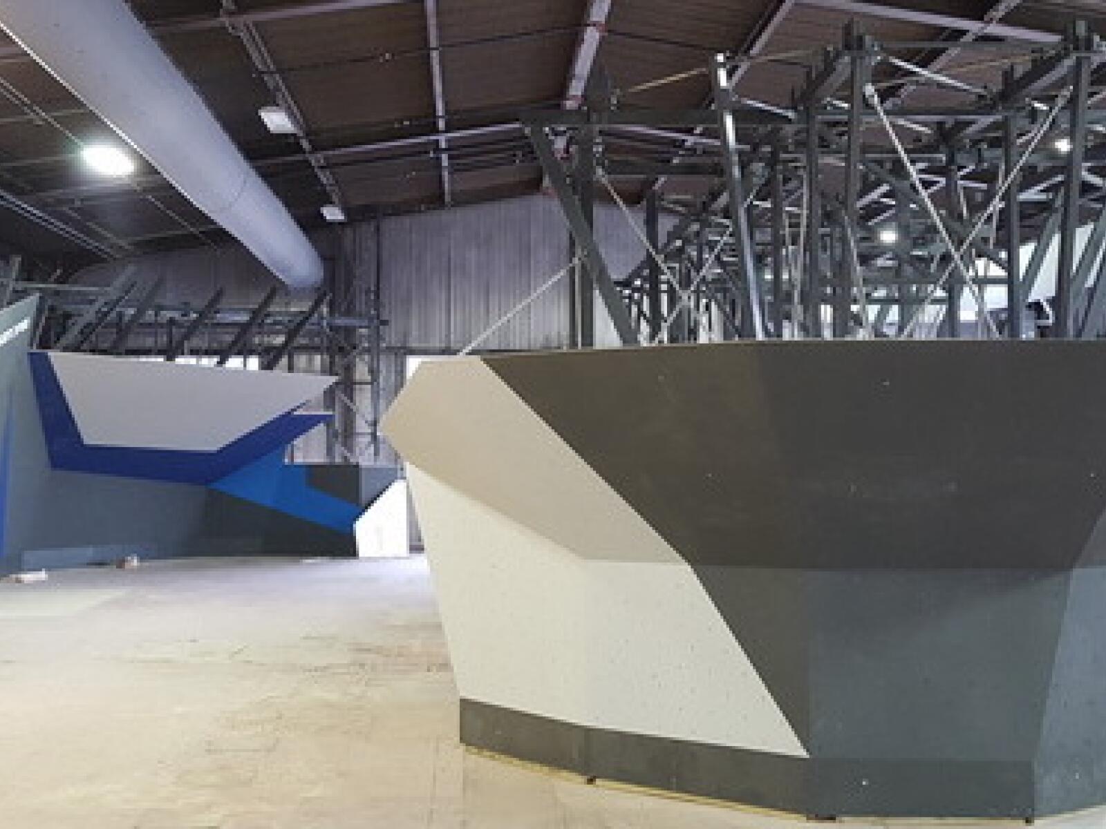 The Walltopia crew arrived on January 13th and has been working non-stop since. They had the unique challenge of ASCEND being on the second floor, which meant almost everything had to be carried upstairs by hand… trust us, this was no small task! So, hats off to the hard working Walltopia crew for getting the job done, no matter how hard. Despite the extra time spent unloading the shipments, they're still on schedule and progress is being made everyday.Once all the steel, panelling, and hardware were on site, Walltopia began erecting the steel frames for the Cave, Top Out, and Arch Boulders. In order to be ready on time for Flashed's arrival in just a couple of weeks, they're currently working to complete the panelling for those three boulders before moving on to the Top-Rope and Training Walls. Another added benefit of completing these walls before moving on is that we can start setting some problems! Since we plan to open with well over 200 problems, we're psyched to get a head start!All in all, every day has been increasingly exciting and humbling. As we watch the walls go up around us, we're kept busy putting the finishing touches on everything else. We can't wait to see you all soon!