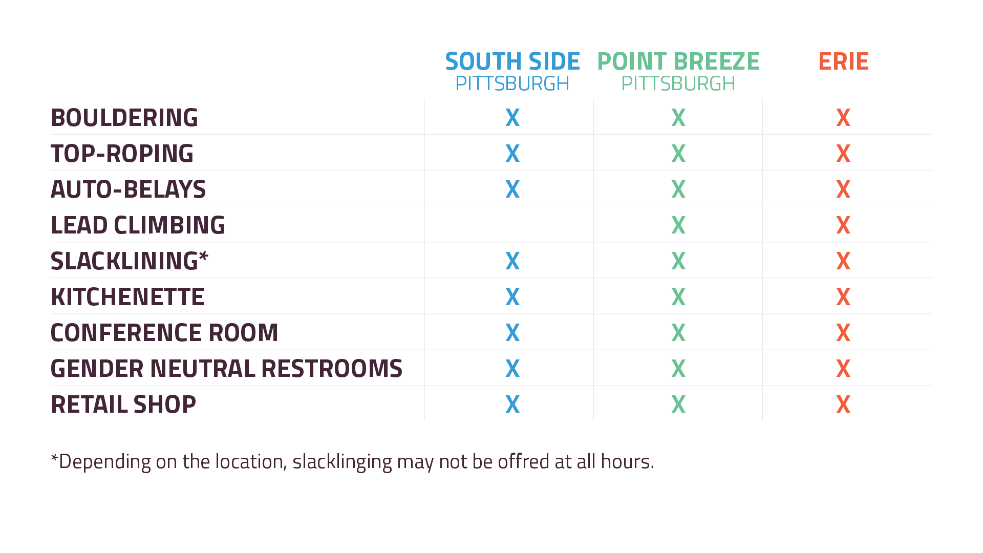 We take pride in that each ASCEND facility offers a unique experience. By not holding ourselves to constrained principles, our terrain, amenities, programs, and atmosphere can adapt to each space and evolve alongside industry and local trends throughout the years, providing our surrounding neighborhoods a community hub that resonates with the local residents. Compare them below, then treat yourself to a deep-dive of each!