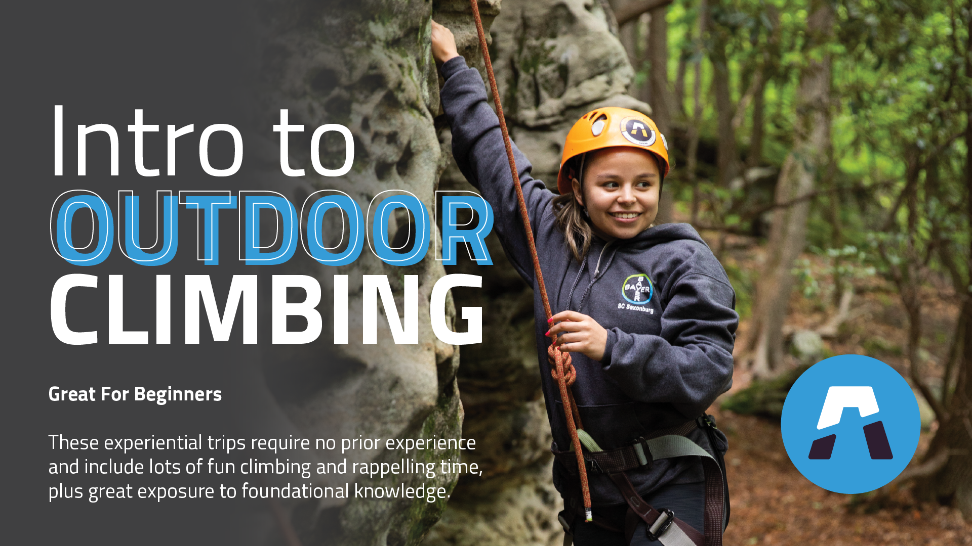 These experiential trips require no prior experience and include lots of fun climbing and rappelling time, plus great exposure to foundational knowledge.
